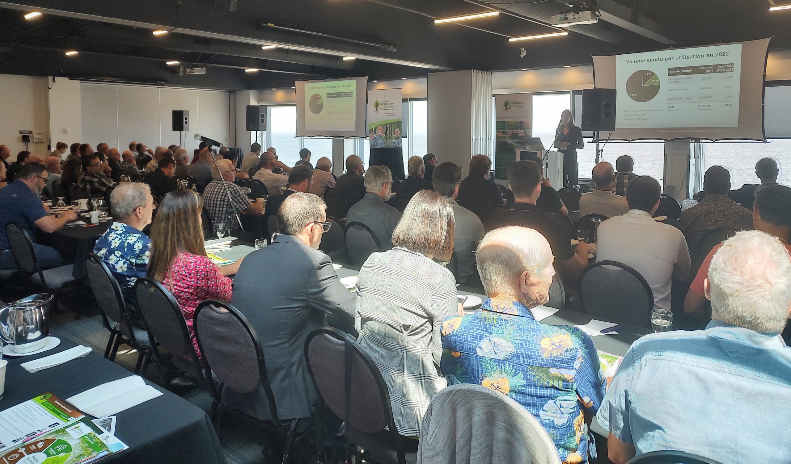 Cette année, le Syndicat des producteurs forestiers du Bas-Saint-Laurent fut la région hôte du congrès annuel de la FPFQ qui a eu lieu à Matane le 1er juin dernier. Les discussions et les résolutions adoptées par les délégués ont mis en évidence l’importance de l’approvisionnement en bois issu des forêts privées. Les participants ont particulièrement apprécié la table ronde réunissant des représentants de l’industrie, des syndicats et offices de producteurs forestiers, des entrepreneurs et du MRNF qui ont échangé sur cet enjeu.