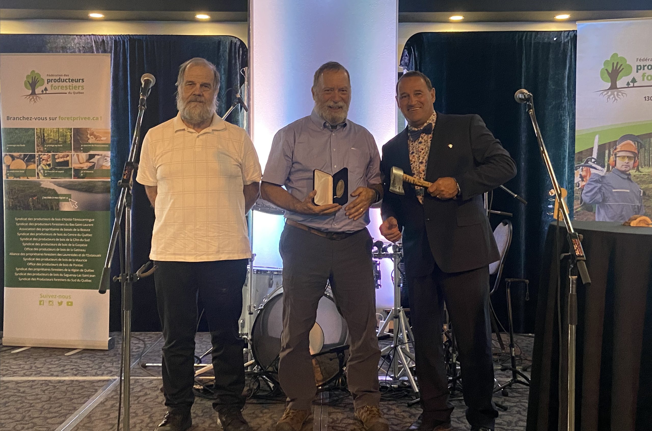 En soirée, le prix Henri-Paul-Gagnon a été remis à M. Raymond Thibeault qui a œuvré plus de 40 ans en syndicalisme forestier en tant que directeur du Syndicat des producteurs de bois de Nicolet puis du Syndicat des Producteurs forestiers du Sud du Québec. Parmi ses réalisations, notons sa participation à la fin des années 70 à la mise en place des groupements forestiers dans le Centre-du-Québec et à la consolidation du territoire entre le Plan conjoint du Sud du Québec avec la portion montérégienne du territoire du Plan conjoint du Sud-Ouest. Autre réalisation notable; en 2009, il a participé à la mise en place de la certification forestière FSC® sur le territoire du Plan conjoint du Sud du Québec, soit un des plus grands certificats en Amérique du Nord en petite forêt privée. Rappelons que le prix Henri-Paul-Gagnon est décerné annuellement à une personne ayant contribué de façon exceptionnelle à la vie syndicale dans le secteur de la forêt privée. Institué en 2010, le prix est attribué à la mémoire de M. Henri-Paul Gagnon, originaire du Saguenay–Lac-Saint-Jean, président fondateur de la fédération en 1970.