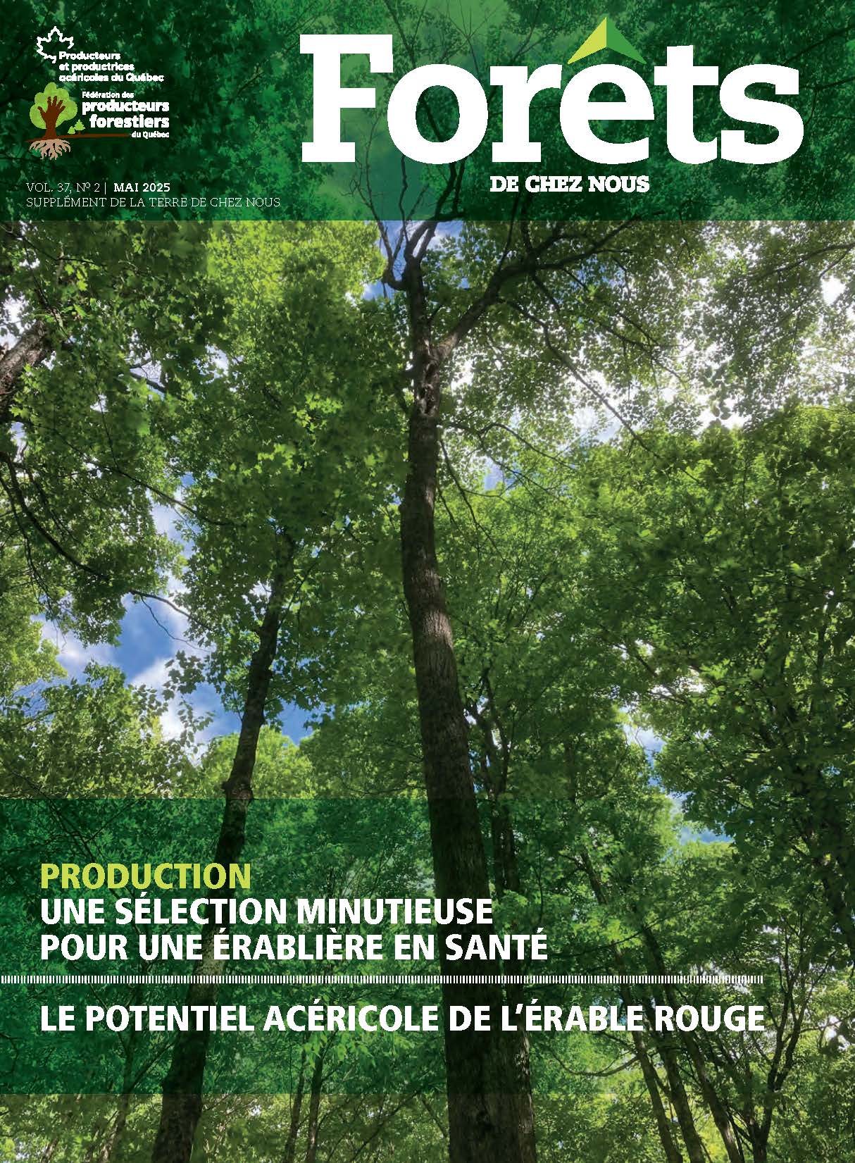 • Éditorial du président – Régime forestier : Quel avenir pour les forêts privées? • Actualités • Choix des arbres pour améliorer la vigueur et la qualité d’une érablière • Bilan 2024 de la mise en marché du bois de la forêt privéeInfolettre Forêts de chez nous PLUS